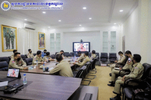 ភ្នំពេញ៖ ព្រឹកថ្ងៃពុធ ៦រោច ខែបឋមាសាឍ ឆ្នាំឆ្លូវ ត្រីស័ក ព.ស.២៥៦៥ ត្រូវនឹងថ្ងៃទី៣០ ខែមិថុនា ឆ្នាំ២០២១ នៅសាលប្រជុំគណៈស្នងការ លោកឧត្តមសេនីយ៍ទោ ឈឿន សុចិត្ត ស្នងការនគរបាលខេត្តកណ្តាល ដឹកនាំ លោក-លោកស្រីស្នងការរង ចំនួន០៤ផែនជំនាញ ចូលរួមកិច្ចប្រជុំបូកសរុបសភាពការណ៍សន្តិសុខ សណ្តាប់ធ្នាប់សង្គម និងលទ្ធផលអនុវត្តផែនការសកម្មភាពប្រចាំឆមាសទី១ និងទិសដៅបន្តអនុវត្តឆមាសទី២ ឆ្នាំ២០២១ តាមប្រព័ន្ធ ZOOM ក្រោមអធិបតីភាពដ៏ខ្ពង់ខ្ពស់ ឯកឧត្តម នាយឧត្តមសេនីយ៍ សន្តិបណ្ឌិត នេត សាវឿន អគ្គស្នងការនគរបាលជាតិ៕