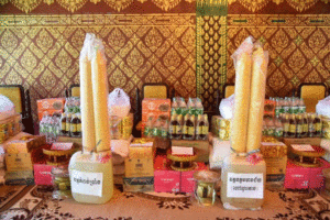 ទៀនព្រះវស្សា ទេយ្យវត្ថុ និងបច្ច័យដែលត្រូវបាននាំយកទៅប្រគេនដល់ព្រះសង្ឃចំនួន ១៣ វត្តនាឱកាសនោះ ក្នុងមួយវត្ត ឯកឧត្តម បានប្រគេនទៀនវស្សា ១គូ, ស្លាដក់ ១ឈុត, ទឹកដោះគោ ១កេស, ស្ករស ១០គីឡូក្រាម, ទឹកត្រី ៤យួរ, ទឹកស៊ីអុីវ ៤យួរ, ត្រីខ ១កេស, មីម៉ាម៉ា ១កេសធំ, ទឹកបរិសុទ្ធ ៥កេស, ទឹកក្រូច ៥កេស, ប្រេងម៉ាស៊ូត ១កាន, អង្ករផ្កាម្លិះ ១០០គីឡូក្រាម, តែ ៥គីឡូក្រាម, ម៉ាស់ ១កេស, បច្ច័យកសាងវត្ត ២,០០០,០០០រៀល ប្រគេនព្រះសង្ឃ បច្ច័យ ១០០,០០០រៀល ជូនតាជីយាយជីម្នាក់ៗ ៥០,០០០រៀល, សរុបថវិកា ៥៥,៨០៩,០០០រៀល។