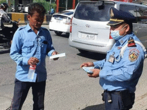 សូមបងប្អូនប្រជាពលរដ្ឋទាំងអស់ដែលរស់នៅរាជធានីភ្នំពេញ នៅពេលធ្វេីដំណេីរដោយថ្មេីរជេីង ជិះកង់ ជិះម៉ូតូ ម៉ូតូកង់បី, សូមចូលរួមពាក់ម៉ាស់ឲ្យបានគ្រប់ៗគ្នា ដេីម្បីចូលរួមបង្ការ និងទប់ស្កាត់ការឆ្លងរាលដាលវីរុសកូវីដ១៩ ។