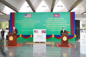 តាមរយៈមជ្ឈមណ្ឌលកូវ៉ាក់ សហរដ្ឋអាមេរិក បានប្រកាសផ្តល់វ៉ាក់សាំងចំនួន ១លានដូសដល់រាជរដ្ឋាភិបាល និងប្រជាជនកម្ពុជា។ វ៉ាក់សាំងដែលមកដល់ថ្ងៃនេះ មានចំនួន ៥០ម៉ឺនដូស ដោយឡែកចំនួន ៥០ម៉ឺនដូស នឹងដឹកមកដល់នៅថ្ងៃទី០២ ខែសីហាខាងមុខ។ អំណោយនេះ គឺជាផ្នែកមួយនៃការគាំទ្រជាបន្តបន្ទាប់របស់សហរដ្ឋអាមេរិក ចំពោះប្រជាជនកម្ពុជា និងនៅក្នុងតំបន់ ក្នុងពេលកំពុងតែប្រឹងងើបចេញពីជំងឺរាតត្បាតយ៉ាងធ្ងន់ធ្ងរនេះ។