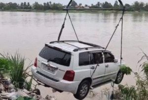 រថយន្តធ្លាក់ពីទូកដរចុះទឹកទន្លេរបាសាក់