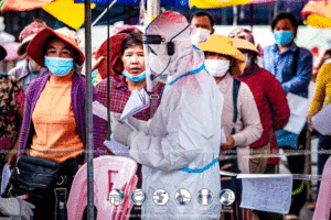 ក្រុមគ្រូពេទ្យសម្ដេចតេជោប្រឆាំងកូវីដ-១៩ បានយកសំណាកអាជីវករ នៅផ្សារដើមគរ