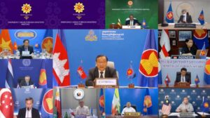 ភ្នំពេញ៖ តបតាមការអញ្ជើញរបស់ ឯកឧត្តម អុីរីវ៉ាន់ ពើហ៊ីន យូស៊ូហ៍ រដ្ឋមន្ត្រីការបរទេសទី២ នៃប្រទេសប្រ៊ុយណេដារ៉ូស្សាឡាម ឯកឧត្តមឧបនាយករដ្ឋមន្រ្តី ប្រាក់ សុខុន រដ្ឋមន្រ្តីការបរទេស និងសហប្រតិបត្តិការអន្តរជាតិនៃព្រះរាជាណាចក្រកម្ពុជា បានអញ្ជើញចូលរួមកិច្ចប្រជុំរដ្ឋមន្រ្តីការបរទេសអាស៊ាន នៅថ្ងៃទី១៥ ខែតុលា ឆ្នាំ២០២១ តាមប្រព័ន្ធវីដេអូ។