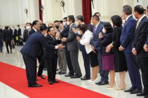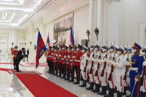 សម្តេចអគ្គមហាសេនាបតីតេជោ ហ៊ុន សែន នាយករដ្ឋមន្រ្តី នៃព្រះរាជាណាចក្រកម្ពុជា អញ្ជើញទទួលបដិសណ្ឋារកិច្ចជាផ្លូវការ និងអមដំណើរឯកឧត្តម បណ្ឌិត ផនខាំ វីផាវ៉ាន់ (Phankham Viphavanh) នាយករដ្ឋមន្ត្រី នៃសាធារណរដ្ឋប្រជាធិបតេយ្យប្រជាមានិត្យឡាវ ត្រួតពល មុនជួបសវនាការទ្វេភាគី នៅវិមានសន្តិភាព រាជធានីភ្នំពេញ នារសៀលថ្ងៃទី២៩ ខែវិច្ឆិកា ឆ្នាំ២០២១ ខណៈឯកឧត្តមនាយករដ្ឋមន្រ្តីឡាវដឹកនាំគណៈប្រតិភូអញ្ជើញមកបំពេញទស្សនកិច្ចផ្លូវការនៅព្រះរាជាណាចក្រម្ពុជា ។