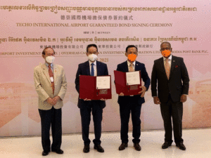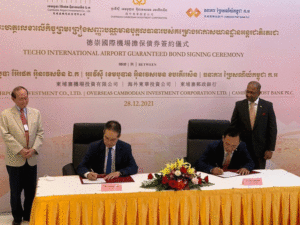 នេះបើតាមការបញ្ជាក់ឱ្យដឹងពី លោក ឆារស៍ វ៉ាន់ (Charles Vann) អគ្គនាយករង ក្រុមហ៊ុន Cambodia Airport Investment (CAIC) និងលោក តូច ចៅចេក ប្រធាននាយក ប្រតិបត្តិធនាគារប្រៃសណីយ៍កម្ពុជា ក្នុងពិធីចុះហត្ថលេខាព្រមព្រៀងរួមគ្នា វិនិយោគទឹកប្រាក់ ចំនួន១០លានដុល្លារអាម៉េរិក លើសញ្ញាប័ណ្ណមានបុគ្គលធានារបស់ គម្រោងសាងសង់ អាកាសយានដ្ឋានអន្តរជាតិតេជោ ក្រោមវត្តមាន អ្នកឧកញ៉ា ពុង ឃាវសែ នាយកក្រុមហ៊ុន OCIC នៅរសៀលថ្ងៃទី២៨ ខែធ្នូ ឆ្នាំ២០២១ នៅអគារពាណិជ្ជកម្ម កាណាឌីយ៉ា។