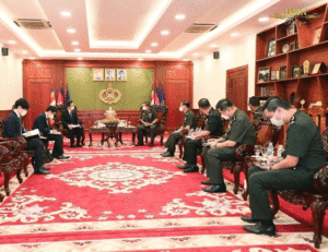 ភ្នំពេញ៖ ថ្ងៃអង្គារ ៨ រោច ខែបុស្ស ឆ្នាំឆ្លូវ ត្រីស័ក ពុទ្ធសករាជ ២៥៦៥ ត្រូវនឹងថ្ងៃទី២៥ ខែមករា ឆ្នាំ២០២២ ឯកឧត្តម ឧត្តមសេនីយ៍ឯក ហ៊ុន ម៉ាណែត អគ្គមេបញ្ជាការរងនៃកងយោធពលខេមរភូមិន្ទ មេបញ្ជាការកងទ័ពជើងគោក អញ្ជើញទទួលជួបសម្តែងការគួរសម និងពិភាក្សាការងារជាមួយ ឯកឧត្តម Mikami Masahiro ឯកអគ្គរាជទូតជប៉ុនប្រចាំនៅព្រះរាជាណាចក្រកម្ពុជា ។