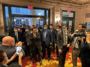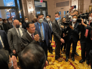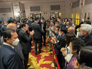 សម្តេចតេជោនាយករដ្ឋមន្រ្តីត្រូវបានទទួលស្វាគមន៍យ៉ាងកក់ក្តៅដោយបងប្អូនខ្មែរអាមេរិកាំងនៅ Willard intercontinental hotel, Washington DC , USA