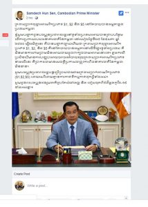ប្រភពពី ហ្វេសបុកផេក (Samdech Hun Sen Cambodia Prime minister) បានសរសេជាសំណេផ្ញើសារបង្ហោះជាសារធារណៈដែលមានខ្លឹមសារដូចខាងក្រោម៖