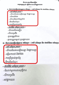 ចំពោះបទល្មើស រថយន្ដមាន ៩ ចំណុច អនុញ្ញាតអោយអប់រំ ណែនាំ ៥ ចំណុច ដែលមានក្នុងរង្វង់ក្រហម ។