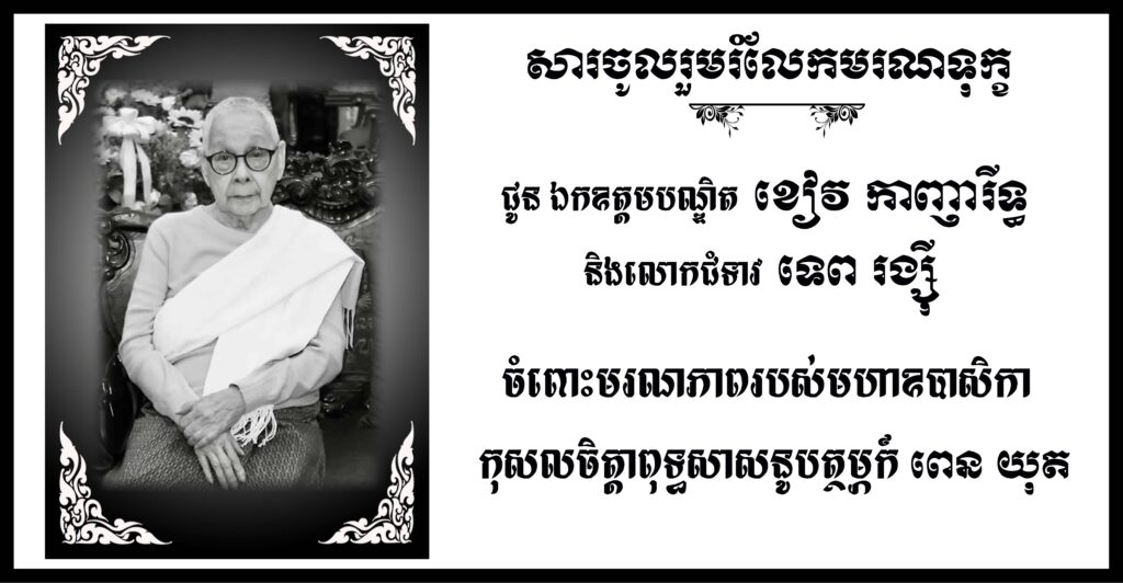 លោក ម៉ុន សាមាស ចាងហ្វាង 7makaranews សារលិខិតចូលរួមរំលែកមរណៈទុក្ខ សូមគោរពផ្ញើជូន ឯកឧត្តមបណ្ឌិត ខៀវ កាញារីទ្ធ និងលោកជំទាវ ទេព រង្ស៊ី