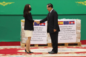 សម្តេចតេជោ ហ៊ុន សែន នាយករដ្ឋមន្ត្រីនៃព្រះរាជាណាចក្រកម្ពុជា អញ្ជើញទទួលវ៉ាក់សាំងបង្ការជំងឺកូវីដ-១៩ជំនួយអេស្ប៉ាញចំនួន៣០ម៉ឺនដូស