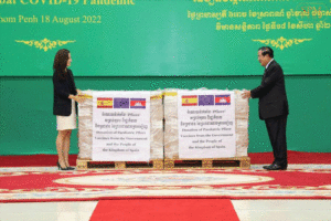 ភ្នំពេញ៖ នៅព្រឹក ថ្ងៃព្រហស្បតិ៍ ៦រោច ខែស្រាពណ៍ ឆ្នាំខាល ចត្វាស័ក ព.ស. ២៥៦៦ ត្រូវនឹង ថ្ងៃទី១៨ ខែសីហា ឆ្នាំ២០២២ សម្តេចអគ្គមហាសេនាបតីតេជោ ហ៊ុន សែន នាយករដ្ឋមន្ត្រីនៃព្រះរាជាណាចក្រកម្ពុជា បានអញ្ជើញទទួលវ៉ាក់សាំងបង្ការជំងឺកូវីដ១៩ ដែលជាជំនួយរបស់រដ្ឋាភិបាល និងប្រជាជនអេស្ប៉ាញ ។