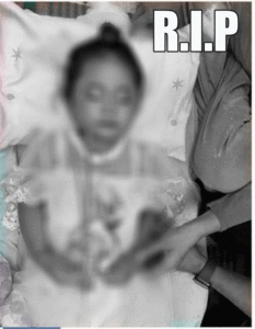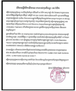(Cardio-Respiratory failure) ក្រុមគ្រូពេទ្យសង្គ្រោះបន្ទាន់បានខិតខំប្រឹងប្រែងជួយសង្គ្រោះកុមារីតូចនេះអស់ពីសមត្ថភាពអស់រយៈពេលជាង ៣ ម៉ោងជាអកុសលយើងមិនអាចសង្គ្រោះកុមារីនេះបាន ជាការសន្និដ្ឋានយើងអាចយល់ថាការវិវត្តយ៉ាងឆាប់រហ័សនៃស្ថានភាពជំងឺរហូតដល់មរណៈភាពភ្លាម មុន ២៤ ម៉ោងដោយពុំបានរំពឹងទុកជាករណីដ៏កម្របំផុតលើកុមារដែលគេហៅថា Sudden infant death syndrome(SIDS)-La Mort Subite inopinee de l’enfant