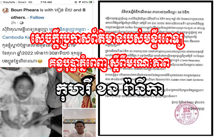 ពេលនេះខាងមន្ទីរពេទ្យគន្ធបុប្ផាមុននេះបានចេញសេចក្តីប្រកាសព័ត៌មានស្ដីពីមរណៈភាពរបស់កុមារី ខន រ៉ានីកាស្របពេលមហាជនកំពុងចាប់អារម្មណ៍។