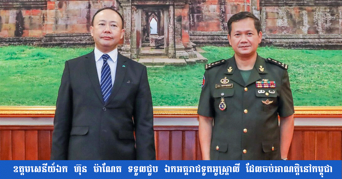 ឧត្តមសេនីយ៍ឯក ហ៊ុន ម៉ាណែត ទទួលជួប ឯកអគ្គរាជទូតអូស្រ្តាលី ដែលចប់អាណត្តិនៅកម្ពុជា