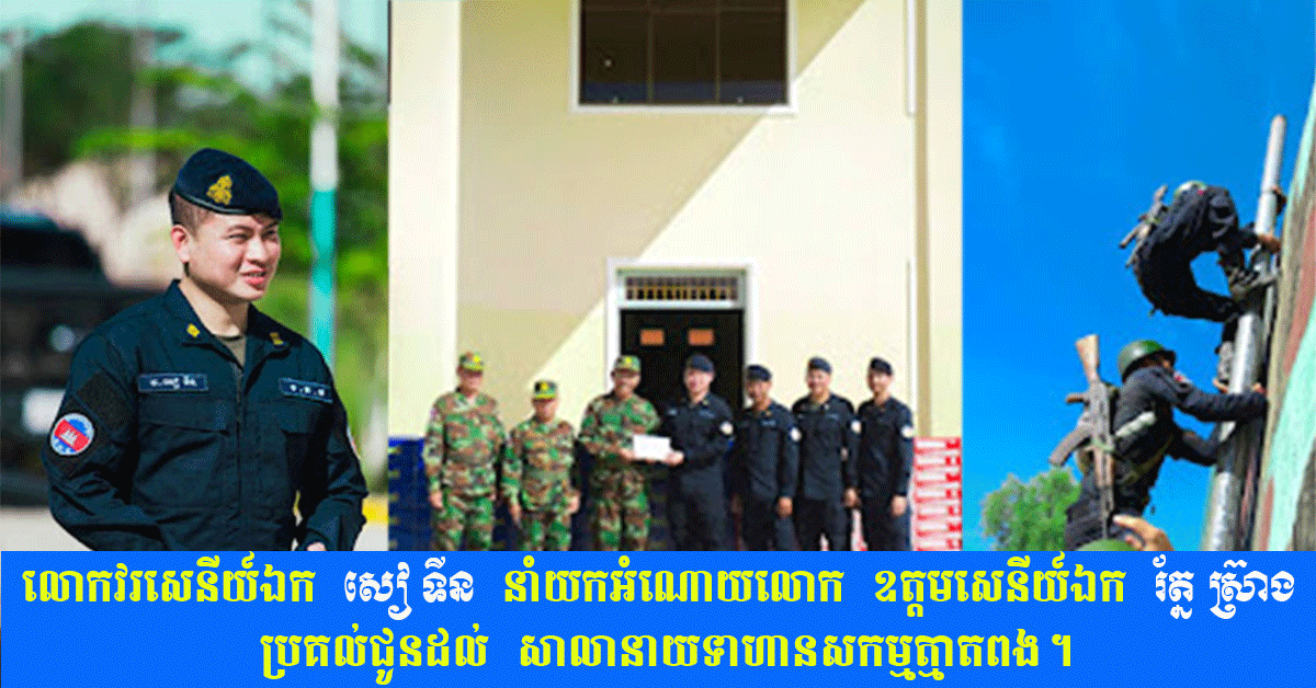 លោកវរសេនីយ៍ឯក សៀ ទីន នាំយកអំណោយលោក ឧត្តមសេនីយ៍ឯក រ័ត្ន ស៊្រាង ប្រគល់ជូនដល់ សាលានាយទាហានសកម្មត្មាតពង។