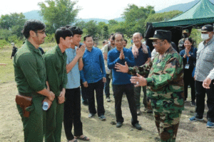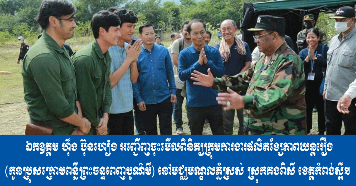 ឯកឧត្តម នាយឧត្តមសេនីយ៍កិតិ្តបណ្ឌិត ហ៊ីង ប៊ុនហៀង អគ្គមេបញ្ជាការរង ខ.ភ.ម និងជាមេបញ្ជាការ បញ្ជាការដ្ឋានអង្គរក្ស។ អញ្ជើញចុះមើលពិនិត្យក្រុមការងារផលិតខ្សែភាពយន្តរឿង (កូនប្រុសក្រោមពន្លឺព្រះចន្ទពេញបូណ៌មី) នៅមជ្ឈមណ្ឌលភ្នំស្រស់ ស្រុកគងពិសី ខេត្តកំពង់ស្ពឺ។