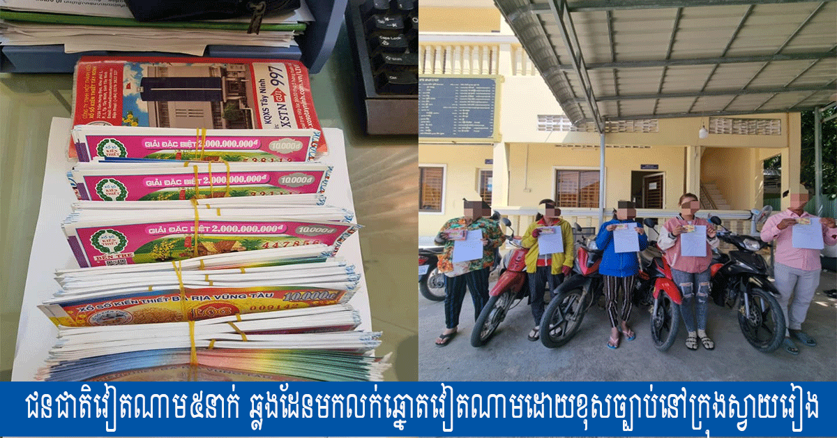 នគរបាលចាប់ឃាត់ខ្លួនជនជាតិវៀតណាម៥នាក់ ឆ្លងដែនមកលក់ឆ្នោតវៀតណាមដោយខុសច្បាប់ក្នុងក្រុងស្វាយរៀង