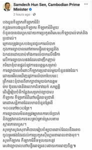 ជាសម្រង់របស់សម្តេចតេជោ ហ៊ុន សែន ពីគណនីយហ្វេសប៊ុកផេក(Samdech Hun Sen, Cambodian Prime Minister)ដូចខាងក្រោម៖