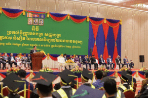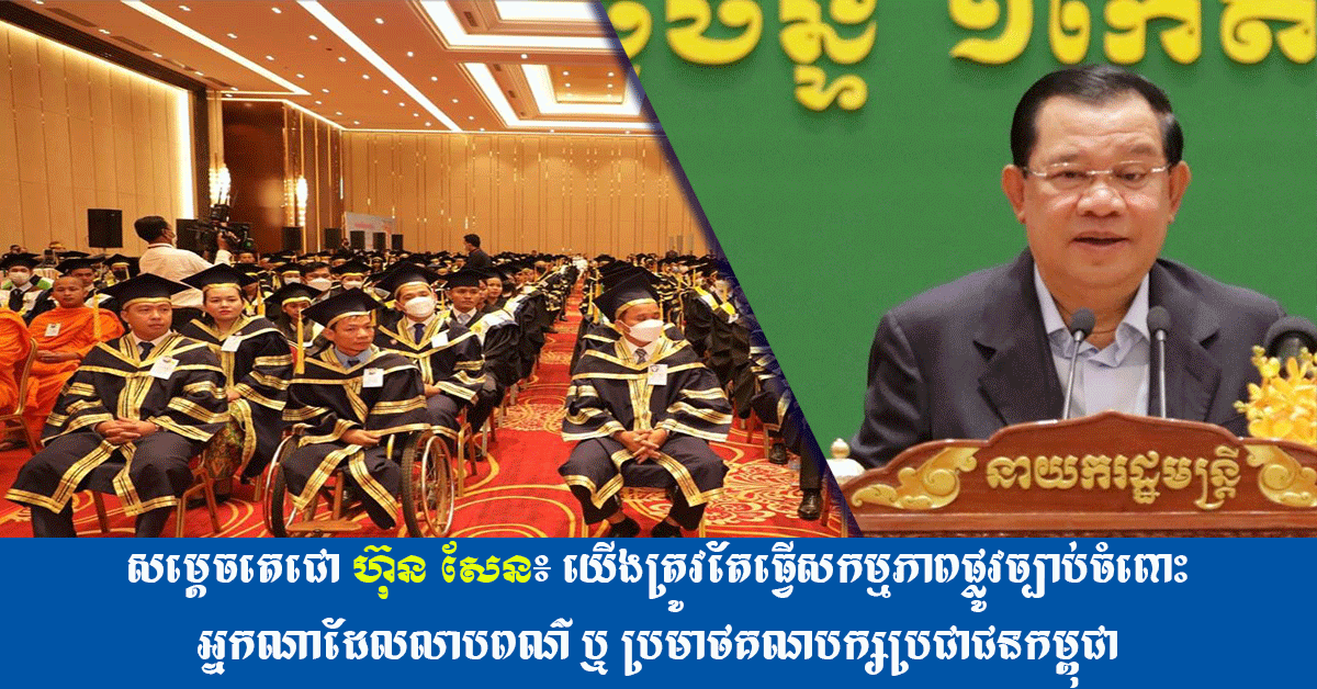 ភ្នំពេញ៖ នៅក្នុងឱកាសអញ្ជើញជាអធិបតីក្នុងពិធីប្រគល់វិញ្ញាបនបត្រ និងសញ្ញាបត្រ ជូនដល់សិស្សថ្នាក់វិជ្ជាជីវៈ និងនិស្សិតសាកលវិទ្យាល័យធនធានមនុស្ស នៅមជ្ឈមណ្ឌលពិព័រណ៍ពាណិជ្ជកម្មជ្រោយចង្វារ នាព្រឹកថ្ងៃទី២០ ខែកុម្ភៈ ឆ្នាំ២០២៣នេះ ជាថ្មីម្តងទៀត សម្តេចតេជោ ហ៊ុន សែន បានថ្លែងថា ទាំងពេលកន្លងទៅ និងពេលនេះទៅមុខ មិនអនុញ្ញាតឱ្យអ្នកណាមកនិយាយលាបពណ៌ ឬប្រមាថមកលើគណបក្សប្រជាជនកម្ពុជា ដោយគណបក្សប្រជាជនមិនតបតខាងផ្លូវច្បាប់នោះទេ។