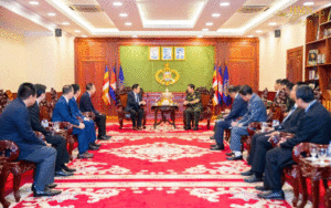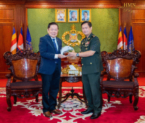 ភ្នំពេញ៖ នាព្រឹកថ្ងៃទី២ ខែមីនា ឆ្នាំ២០២៣ នៅទីបញ្ជាការកងទ័ពជើងគោក នៃកងយោធពលខេមរភូមិន្ទ ឯកឧត្តម ឧត្តមសេនីយ៍ឯក ហ៊ុន ម៉ាណែត អគ្គមេបញ្ជាការរង នៃកងយោធពលខេមរភូមិន្ទ មេបញ្ជាការកងទ័ពជើងគោក បានទទួលជួបសំណេះសំណាល និងពិភាក្សាការងារជាមួយនឹង ឯកឧត្តម Victor Oh សមាជិកព្រឹទ្ធសភាកាណាដា ដែលអញ្ជើញមកបំពេញទស្សនកិច្ចនៅព្រះរាជាណាចក្រកម្ពុជា តាមការអញ្ជើញរបស់ការិយាល័យតំណាងសភាពាណិជ្ជកម្មកម្ពុជាប្រចាំទីក្រុង Toronto ប្រទេសកាណាដា។