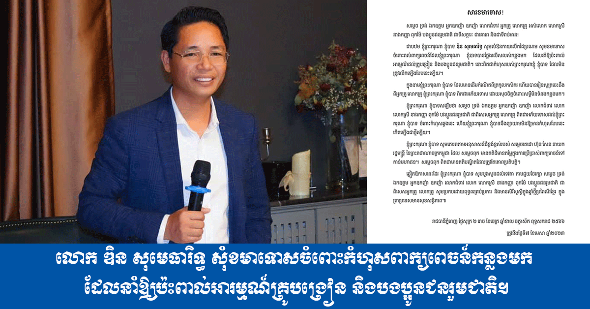 លោក ឌិន សុមេធារិទ្ធ សុំខមាទោសចំពោះកំហុសពាក្យពេចន៍កន្លងមកដែលនាំឱ្យប៉ះពាល់អារម្មណ៍គ្រូបង្រៀន និងបងប្អូនជនរួមជាតិ