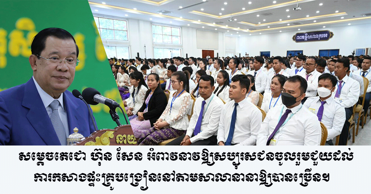 សម្ដេចតេជោ ហ៊ុន សែន អំពាវនាវឱ្យសប្បុរសជនចូលរួមជួយដល់ការកសាងផ្ទះគ្រូបង្រៀននៅតាមសាលានានាឱ្យបានច្រើន។
