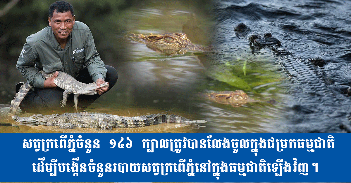 សត្វក្រពើភ្នំចំនួន ១៤៦ ក្បាលត្រូវបានលែងចូលក្នុងជម្រកធម្មជាតិដើម្បីបង្កើនចំនួនរបាយសត្វក្រពើភ្នំនៅក្នុងធម្មជាតិឡើងវិញ។