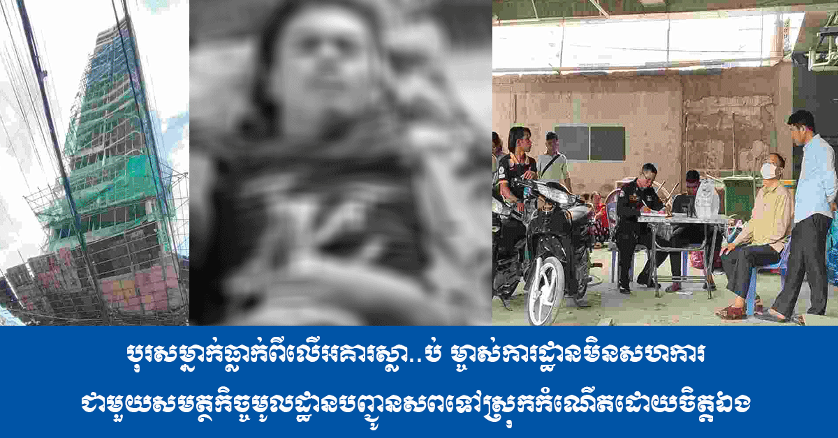 បុរសម្នាក់ធ្លាក់ពីលើអគារស្លា..ប់ ម្ចាស់ការដ្ឋានមិនសហការជាមួយសមត្ថកិច្ចមូលដ្ឋានបញ្ជូនសពទៅស្រុកកំណើតដោយចិត្តឯង…!