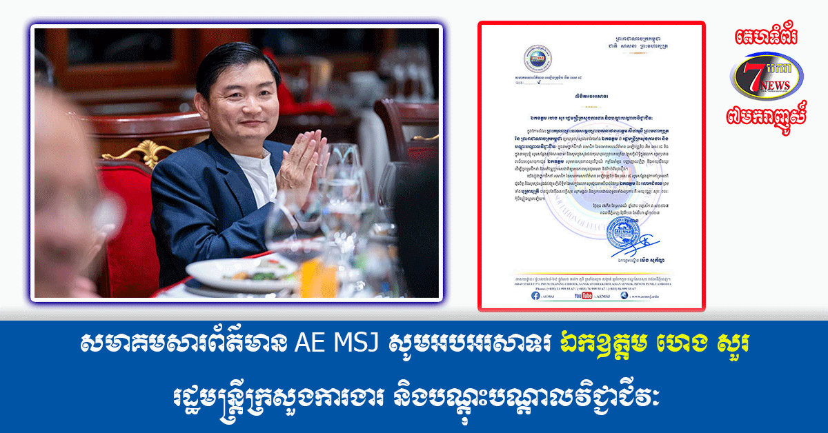 ព័ត៌មានជាតិ ព័ត៌មានថ្មីៗ សមាគមសារព័ត៌មាន AE MSJ សូមអបអរសាទរ ឯកឧត្តម ហេង សួរ រដ្ឋមន្ត្រីក្រសួងការងារ និងបណ្ដុះបណ្ដាលវិជ្ជាជីវៈ 2 years ago adm សមាគមសារព័ត៌មាន AE MSJ សូមអបអរសាទរ ឯកឧត្តម ហេង សួរ រដ្ឋមន្ត្រីក្រសួងការងារ និងបណ្ដុះបណ្ដាលវិជ្ជាជីវៈ Tags: Army cinema consert game music shopping Sport Tourism travel Video war Continue Reading Previous សមាគមសារព័ត៌មាន AE MSJ សូមអបអរសាទរសម្ដេចតេជោ ហ៊ុន សែន ប្រធានក្រុមឧត្តមប្រឹក្សាផ្ទាល់ព្រះមហាក្សត្រ នៃព្រះរាជាណាចក្រកម្ពុជាNext សមាគមសារព័ត៌មាន AE MSJ សូមអបអរសាទរ សូមគោរពជូនសម្តេចក្រឡាហោម ស ខេង ឧត្តមប្រឹក្សាផ្ទាល់ព្រះមហាក្សត្រ នៃព្រះរាជាណាចក្រកម្ពុជា