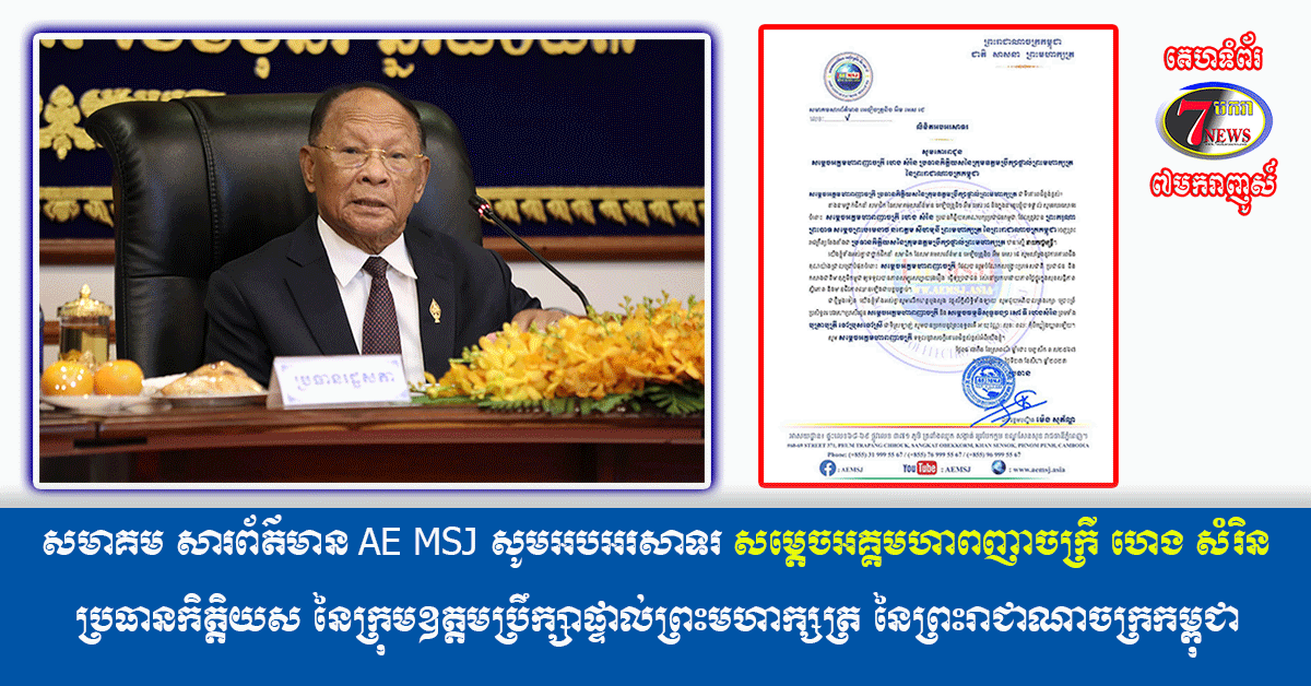 ព័ត៌មានជាតិ ព័ត៌មានថ្មីៗ សមាគមសារព័ត៌មាន AE MSJ លិខិតអបអរសាទរ សូមគោរពជូនសម្ដេចអគ្គមហាពញាចក្រី ហេង សំរិន ប្រធានកិត្តិយសនៃក្រុមឧត្តមប្រឹក្សាផ្ទាល់ព្រះមហាក្សត្រ នៃព្រះរាជាណាចក្រកម្ពុជា 2 years ago adm សមាគមសារព័ត៌មាន AE MSJ លិខិតអបអរសាទរ សូមគោរពជូនសម្ដេចអគ្គមហាពញាចក្រី ហេង សំរិន ប្រធានកិត្តិយសនៃក្រុមឧត្តមប្រឹក្សាផ្ទាល់ព្រះមហាក្សត្រ នៃព្រះរាជាណាចក្រកម្ពុជា Tags: Army cinema consert game music shopping Sport Tourism travel Video war Continue Reading Previous សមាគមសារព័ត៌មាន AE MSJ សូមអបអរសាទរ សូមគោរពជូនសម្តេចក្រឡាហោម ស ខេង ឧត្តមប្រឹក្សាផ្ទាល់ព្រះមហាក្សត្រ នៃព្រះរាជាណាចក្រកម្ពុជាNext ឧត្តមសេនីយ៍ទោ ជួន ណារិន្ទ ត្រូវបានប្រកាសប្រគល់ភារកិច្ចជាស្នងការនគរបាល រាជធានីភ្នំពេញ។