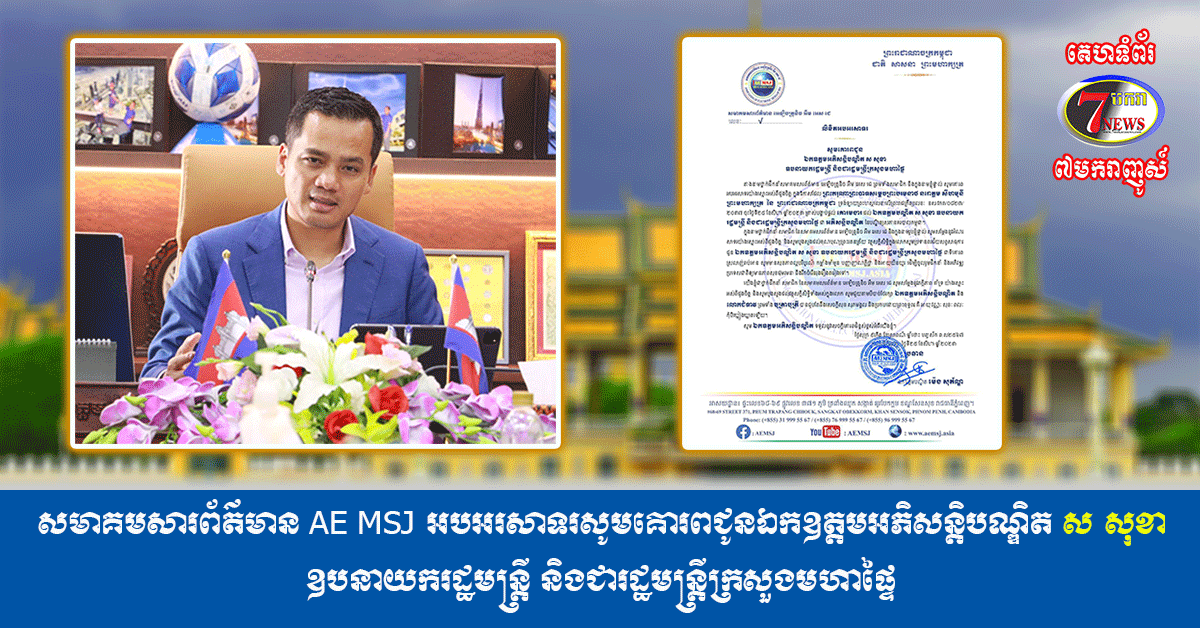 ព័ត៌មានជាតិ ព័ត៌មានថ្មីៗ សមាគមសារព័ត៌មាន AE MSJ អបអរសាទរសូមគោរពជូនឯកឧត្តមអភិសន្តិបណ្ឌិត ស សុខា ឧបនាយករដ្ឋមន្រ្តី និងជារដ្ឋមន្រ្តីក្រសួងមហាផ្ទៃ 2 years ago adm សមាគមសារព័ត៌មាន AE MSJ អបអរសាទរសូមគោរពជូនឯកឧត្តមអភិសន្តិបណ្ឌិត ស សុខា ឧបនាយករដ្ឋមន្រ្តី និងជារដ្ឋមន្រ្តីក្រសួងមហាផ្ទៃ។ Tags: Army cinema consert game music shopping Sport Tourism travel Video war Continue Reading Previous សមាគមសារព័ត៌មាន AE MSJ អបអរសាទរ សូមគោរពជូន ឯកឧត្តម លី វ៉ាន់ហុង ទីប្រឹក្សាផ្ទាល់ ឯកឧត្តមកិត្តិទេសាភិបាលបណ្ឌិត ហ៊ុន ម៉ាណែត នាយករដ្ឋមន្រ្តី នៃព្រះរាជាណាចក្រកម្ពុជាNext សមាគមសារព័ត៌មាន AE MSJ សូមអបអរសាទរ ឯកឧត្តម នេត្រ ភក្ត្រា ក្នុងឱកាសចូលកាន់តំណែងជារដ្ឋមន្ត្រីក្រសួងព័ត៌មាន សម្រាប់នីតិកាលទី៧នេះ