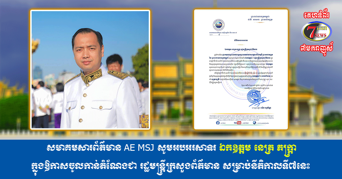 ព័ត៌មានជាតិ ព័ត៌មានថ្មីៗ សមាគមសារព័ត៌មាន AE MSJ សូមអបអរសាទរ ឯកឧត្តម នេត្រ ភក្ត្រា ក្នុងឱកាសចូលកាន់តំណែងជារដ្ឋមន្ត្រីក្រសួងព័ត៌មាន សម្រាប់នីតិកាលទី៧នេះ 2 years ago adm សមាគមសារព័ត៌មាន AE MSJ សូមអបអរសាទរ ឯកឧត្តម នេត្រ ភក្ត្រា ក្នុងឱកាសចូលកាន់តំណែងជារដ្ឋមន្ត្រីក្រសួងព័ត៌មាន សម្រាប់នីតិកាលទី៧នេះ។ Tags: Army cinema consert game music shopping Sport Tourism travel Video war Continue Reading Previous សមាគមសារព័ត៌មាន AE MSJ អបអរសាទរសូមគោរពជូនឯកឧត្តមអភិសន្តិបណ្ឌិត ស សុខា ឧបនាយករដ្ឋមន្រ្តី និងជារដ្ឋមន្រ្តីក្រសួងមហាផ្ទៃNext សម្តេចតេជោ ហ៊ុន សែន និងសម្ដេចកិត្តិព្រឹទ្ធបណ្ឌិត អញ្ជើញថ្វាយព្រះរាជដំណើរ ព្រះមហាក្សត្រ និងសម្តេចម៉ែ នឹងយាងទៅពិនិត្យព្រះរាជសុខភាព នៅប្រទេសចិន។