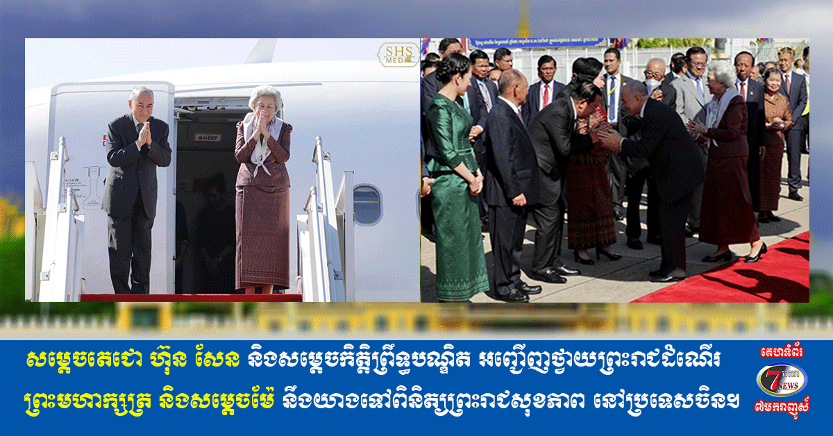 សម្តេចតេជោ ហ៊ុន សែន និងសម្ដេចកិត្តិព្រឹទ្ធបណ្ឌិត អញ្ជើញថ្វាយព្រះរាជដំណើរ ព្រះមហាក្សត្រ និងសម្តេចម៉ែ នឹងយាងទៅពិនិត្យព្រះរាជសុខភាព នៅប្រទេសចិន។