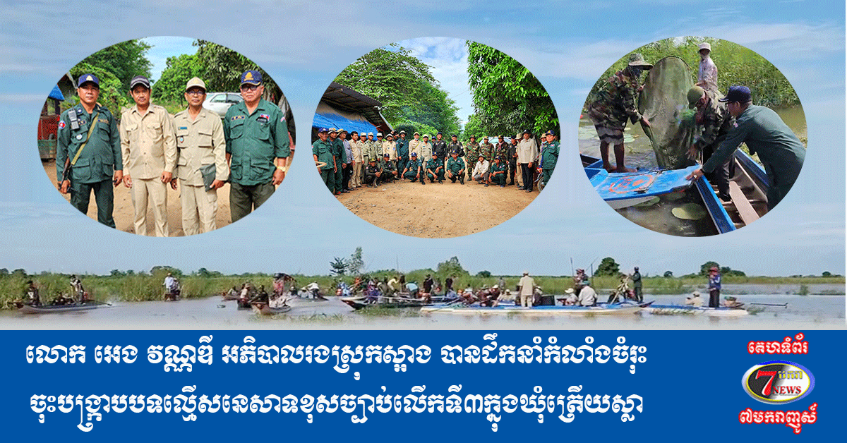 លោក អេង វណ្ណឌី អភិបាលរងស្រុកស្អាង បានដឹកនាំកំលាំងចំរុះចុះបង្រ្កាបបទល្មើសនេសាទខុសច្បាប់លើកទី៣ក្នុងឃុំត្រើយស្លា។