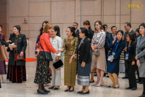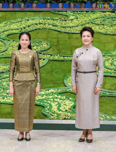 នៅក្នុងពិធីបដិសណ្ឋារកិច្ចផ្លូវការ លោកជំទាវបណ្ឌិត ពេជ ចន្ទមុន្នី ហ៊ុនម៉ាណែត ក៏ដូចលោកជំទាវ ជាភរិយាប្រមុខរដ្ឋ ប្រមុខរដ្ឋាភិបាល នៃប្រទេសដែល អញ្ជើញចូលរួម វេទិកាខ្សែក្រវ៉ាត់ និងផ្លូវ លើកទី៣ ស្តីពីកិច្ចសហប្រតិបត្តិការអន្តរជាតិ ត្រូវបានទទួលនូវការធ្វើគារវកិច្ចស្វាគមន៍យ៉ាងកក់ក្តៅបំផុត ពីលោកជំទាវ ផឹង លីយ័ន ភរិយា ឯកឧត្តមប្រធានាធិបតី នៃសាធារណរដ្ឋប្រជាមានិតចិន ស៊ី ជីនពីង។