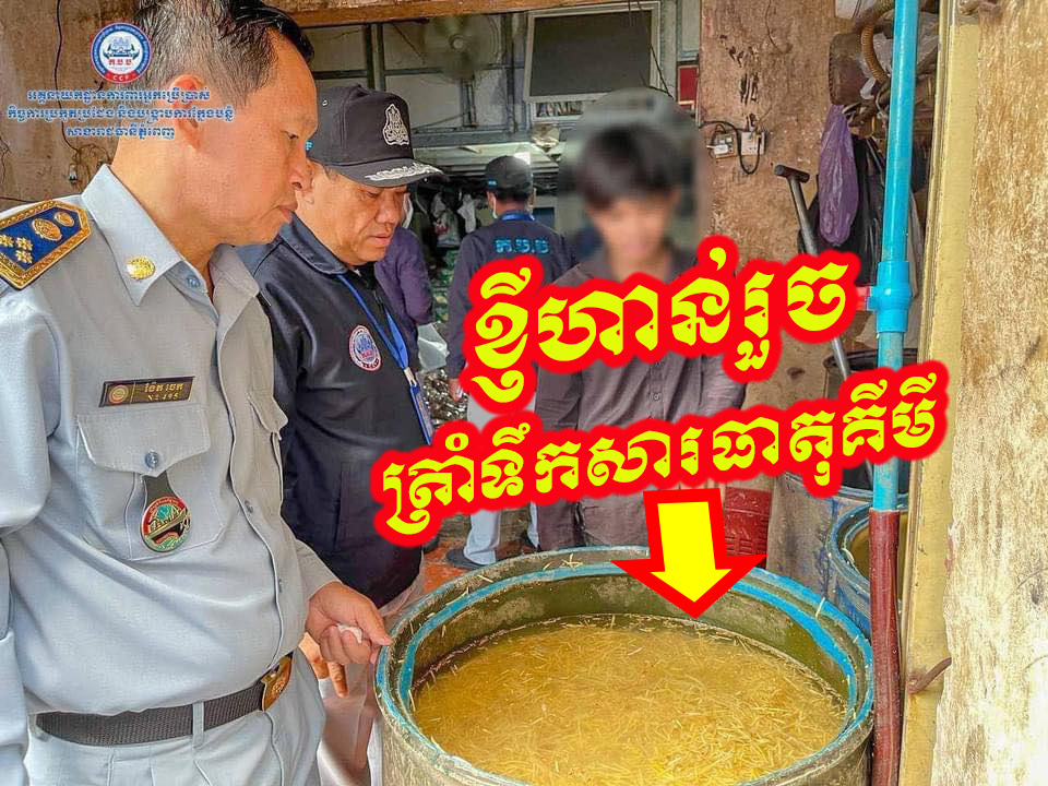 ភ្នំពេញ៖ មន្រ្តីជំនាញសាខា ក.ប.ប.(CCF) អគ្គនាយកដ្ឋានការពារអ្នកប្រើប្រាស់ កិច្ចការប្រកួតប្រជែង និងបង្ក្រាបការក្លែងបន្លំ រាជធានីភ្នំពេញ សហការជាមួយនាយកដ្ឋានមន្ទីរពិសោធន៍ បាននាំយករថយន្តមន្ទីរពិសោធន៍ចល័ត កាលពីម្សិលមិញនេះ បានចុះត្រួតពិនិត្យសុវត្ថិភាពម្ហូបអាហារនៅទីតាំងកែច្នៃខ្ញីហាន់ និងចែកចាយ ចំនួន៣ទីតាំង ដោយមួយកន្លែងក្នុងភូមិសាស្រ្ត សង្កាត់បឹងសាឡាង និង២ទីតាំងទៀត នៅតំបន់ផ្សារនាគមាស សង្កាត់ផ្សារដើមគរ ខណ្ឌទួលគោក រាជធានីភ្នំពេញ រកឃើញមានសារធាតុគីមីលើខ្ញីហាន់ និងទឹកត្រាំខ្ញី ដែលធ្វើឱ្យប៉ះពាល់ដល់សារពាង្គកាយមនុស្សយ៉ាងធ្ងន់ធ្ងរ អាចនឹងធ្វើឱ្យបាត់បង់ជីវិតថែមទៀត។