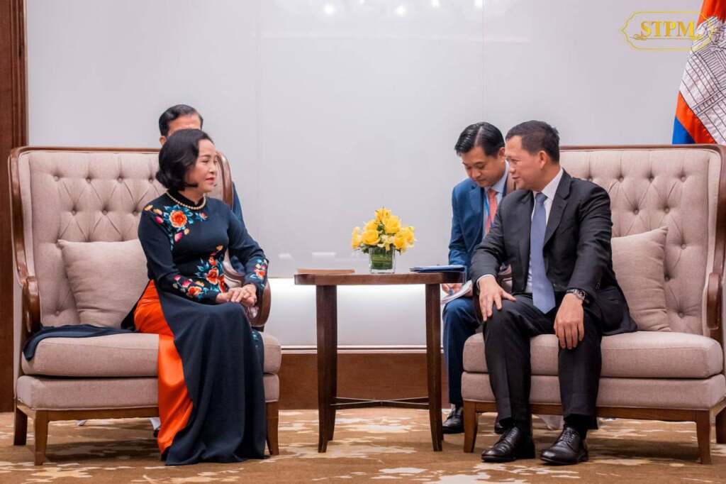 សម្តេចមហាបវរធិបតី ហ៊ុន ម៉ាណែត នាយករដ្ឋមន្ត្រី នៃព្រះរាជាណាចក្រកម្ពុជា បានអញ្ជេីញជួបលោកជំទាវ ង្វៀន ធី ថាញ់ (Nguyen Thi Thanh)