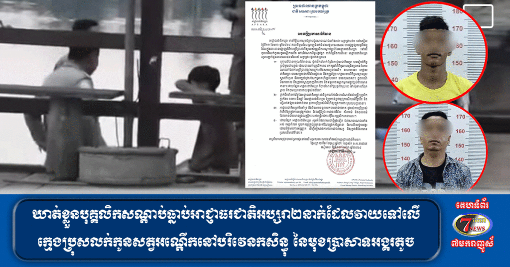 ឃាត់ខ្លួនបុគ្គលិកសណ្ដាប់ធ្នាប់អាជ្ញាធរជាតិអប្សរា២នាក់ ដែលវាយទៅលើក្មេងប្រុសលក់កូនសត្វអណ្ដើកនៅបរិវេនកសិន្ធុ នៃមុខប្រាសាទអង្គរតូច