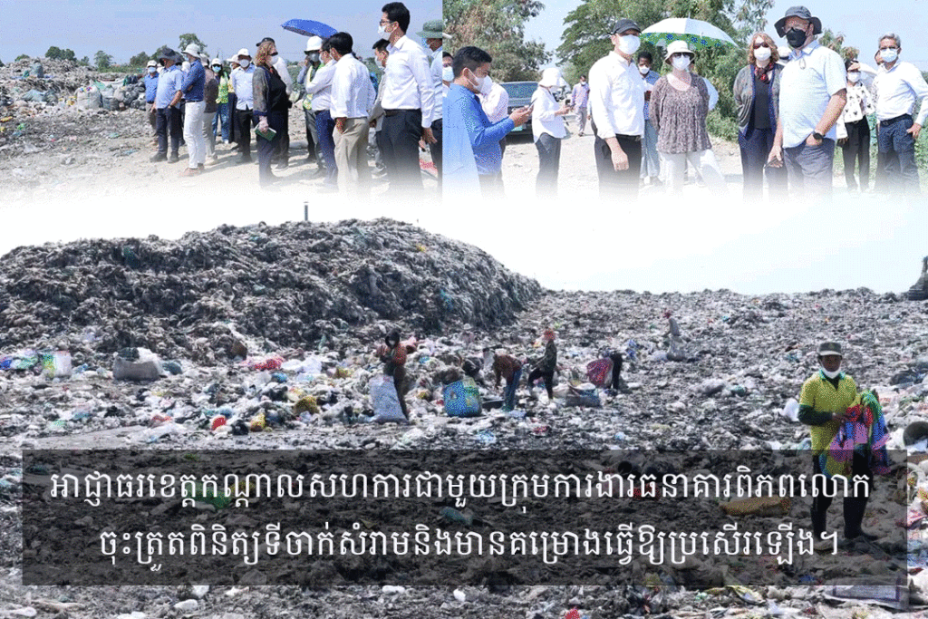 អាជ្ញាធរខេត្តកណ្តាលសហការជាមួយក្រុមការងារធនាគារពិភពលោកចុះត្រួតពិនិត្យទីចាក់សំរាមនិងមានគម្រោងធ្វើឱ្យប្រសើរឡើង។