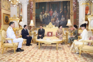 ប្រទេសថៃ៖ សម្តេចមហាបវរធិបតី ហ៊ុន ម៉ាណែត នាយករដ្ឋមន្ត្រី នៃព្រះរាជាណាចក្រកម្ពុជា និងលោកជំទាវបណ្ឌិត ពេជ ចន្ទមុនី ហ៊ុនម៉ាណែត បានអញ្ជើញចូលក្រាបថ្វាយបង្គំគាល់ ព្រះបាទ មហា វ៉ាជីរ៉ាឡុងកន ព្រះវ៉ាជីរ៉ាក់ក្លៅចៅយូហួរ (His Majesty King Maha Vajiralongkorn Phra Vajiraklaochaoyuhua) ព្រះមហាក្សត្រ នៃព្រះរាជាណាចក្រថៃ។