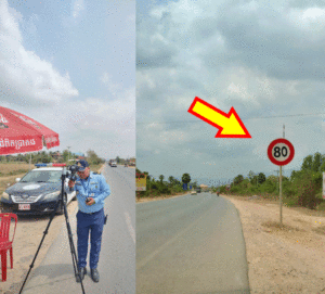 បងប្អូនអាចមើលឃើញស្លាកសញ្ញាកំណត់ល្បឿនចម្ងាយប្រហែល៤០០ម៉ែត្រនិងដល់កន្លែងបាញ់ល្បឿន។