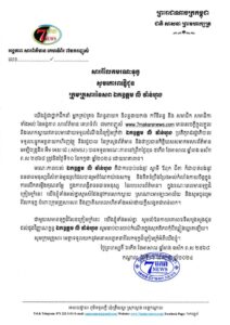 យើងខ្ញុំជាថ្នាក់ដឹកនាំ អ្នកគ្រប់គ្រង និពន្ធនាយក និពន្ធនាយករង ការីនិពន្ធ និង សមាជិក សមាជិកា ទាំងអស់ នៃអង្គភាព សារព័ត៌មាន គេហទំព័រ ៧មករាញូស៍ www.7makaranews.com មានសេចក្តីក្តុលក្តួល និងសោកស្តាយឥតឧបមាដោយទទួលដំណឹងដ៏ក្រៀមក្រំថា ឯកឧត្តម លី វ៉ាន់ហុង ប្រតិភូរាជរដ្ឋាភិបាលទទួលបន្ទុកអគ្គនាយកហិរញវត្ថុ និងរដ្ឋបាល នៃក្រសួងព័ត៌មាន និងជាប្រធានកិត្តិយសសមាគមសារព័ត៌មាន អេឡិចត្រូនិច អឹម អេស ជេ (AEMSJ) បានទទួលមរណៈភាពនៅព្រឹកថ្ងៃពុធ ៥កើត ខែអាសាឍ ឆ្នាំរោង ឆស័ក ព.ស ២៥៦៨ ត្រូវនិងថ្ងៃទី១០ ខែកក្កដា ឆ្នាំ២០២៤ ដោយរោគាពាធ។