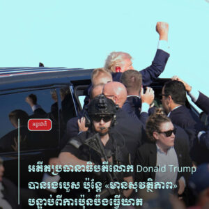 អតីតប្រធានាធិបតីលោក Donald Trump បានរងរបួសក្បាលកាលពីថ្ងៃសៅរ៍ ប៉ុន្តែ លោក«មិនអីទេ»។ នេះបើយោងតាមក្រុមយុទ្ធនាការរបស់លោក បន្ទាប់ពីមានការបាញ់ប្រហារក្នុងទិសដៅរបស់លោកនៅឯការប្រមូលផ្តុំយុទ្ធនាការឃោសនាមួយក្នុងរដ្ឋ Pennsylvania ។