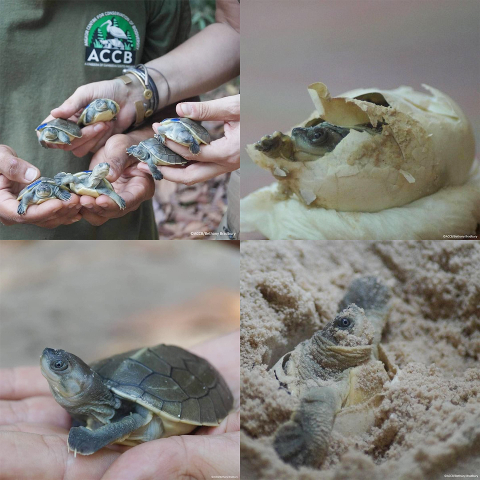 កូនអណ្តើកហ្លួងដែលជាសត្វកម្របំផុតមួយប្រភេទត្រូវបានញាស់កូនមួយសំបុកដែលមានចំនួន១០ក្បាលនៅក្នុងមជ្ឈមណ្ឌលអង្គរសម្រាប់ការអភិរក្សជីវៈចម្រុះ (ACCB)។