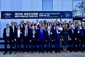 ថ្នាក់ដឹកនាំ នៃវេទិកាចំណេះដឹងពិភពលោក (WKF) នាយកប្រតិបត្តិក្រុមហ៊ុន Maekyung និងអភិបាលក្រុងអ៊ីនឆន់ សាធារណរដ្ឋកូរ៉េ បានសំដែងនូវការស្វាគមន៍ និងវាយតម្លៃខ្ពស់ចំពោះបណ្តាថ្នាក់ដឹកនាំ នៃមជ្ឈដ្ឋានរដ្ឋាភិបាល អ្នកនយោបាយ អ្នកសិក្សាអប់រំ សាជីវកម្ម និងវិស័យផ្សេងៗ ជុំវិញពិភពលោក ដែលមានវត្តមានអញ្ជើញចូលរួមវេទិកាចំណេះដឹងពិភពលោក (World Knowledge Forum) លើកទី២៥ ក្រោមមូលបទ មាគ៌ាឆ្ពោះទៅរកសហត្ថិភាព (Jounney Towards Coexistence) ក្នុងគោលបំណងចែករំលែកចំណេះដឹង ដើម្បីរួមចំណែកជំរុញកំណើនសេដ្ឋកិច្ច និងវិបុលភាពសកលប្រកបដោយតុល្យភាព៕