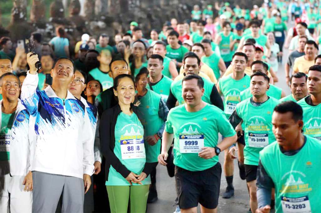 ខេត្តសៀមរាប៖ នាព្រឹកថ្ងៃអាទិត្យ ១កើត ខែមិគសិរ ឆ្នាំរោង ឆស័ក ព.ស.២៥៦៨ ត្រូវនឹងថ្ងៃទី១ ខែធ្នូ ឆ្នាំ២០២៤ សម្តេចមហាបវរធិបតី ហ៊ុន ម៉ាណែត នាយករដ្ឋមន្ត្រី នៃព្រះរាជាណាចក្រកម្ពុជា និង លោកជំទាវបណ្ឌិត ពេជ ចន្ទមុន្នី ហ៊ុន ម៉ាណែត បានអញ្ជើញចូលរួមរត់ម៉ារ៉ាតុងអង្គរ ក្នុងឱកាសទិវារត់ប្រណាំងអន្តរជាតិពាក់កណ្តាលម៉ារ៉ាតុងអង្គរ លើកទី២៩ នៅមុខប្រាសាទអង្គរវត្ត ខេត្តសៀមរាប។