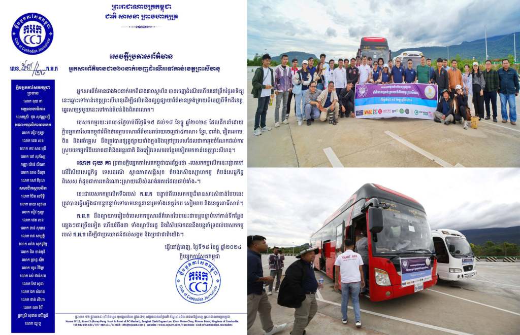 អ្នកសារព័ត៌មានជាង៦០នាក់មកពីជាង៣០ស្ថាប័នឆ្ពោះទៅកាន់ខេត្តព្រះសីហ។