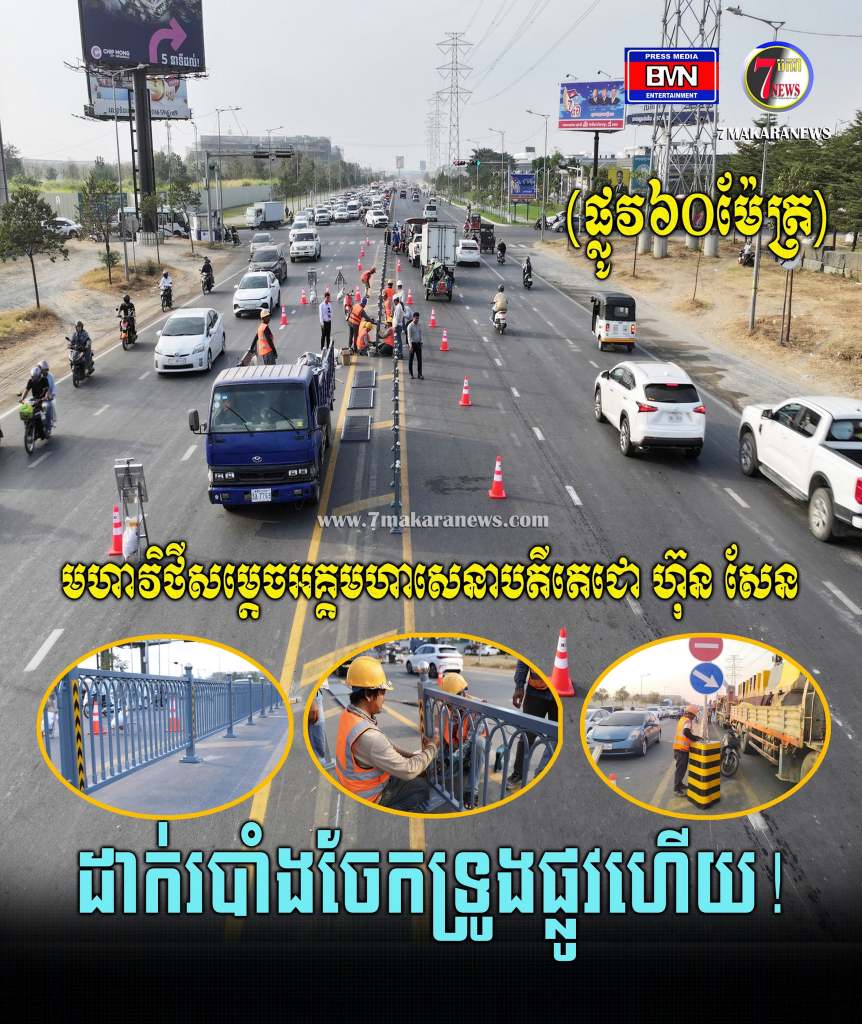 ដំណើរការដាក់របាំងចែកទ្រូងផ្លូវ មហាវិថីសម្តេចអគ្គមហាសេនាបតីតេជោ ហ៊ុន សែន (ផ្លូវ៦០ម៉ែត្រ) កំពុងដំណើរការយ៉ាងសកម្ម និងត្រូវបញ្ចប់ការដាក់របាំងរួចរាល់នៅពាក់កណ្តាលខែមីនា ឆ្នាំ២០២៥ ខាងមុខនេះ។
