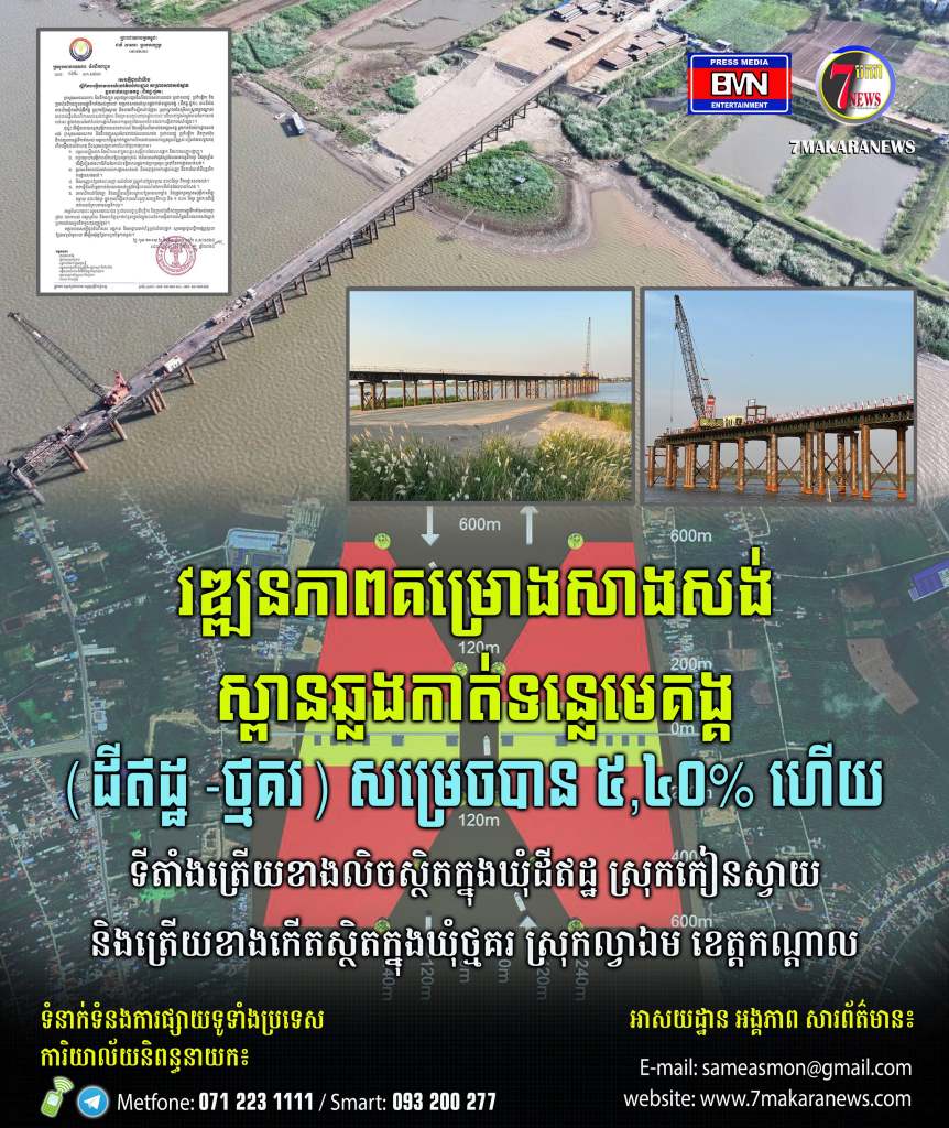 វឌ្ឍនភាពគម្រោងសាងសង់ស្ពានឆ្លងកាត់ទន្លេមេគង្គ(ដីឥដ្ឋ -ថ្មគរ) សម្រេចបាន ៥,៤០% ហើយ